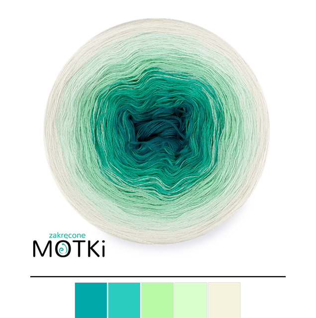 (5) Włóczka Ombre Bawełna Zero Waste - Z30: morski/ opal/ pistacja/ jasna pistacja/ krem