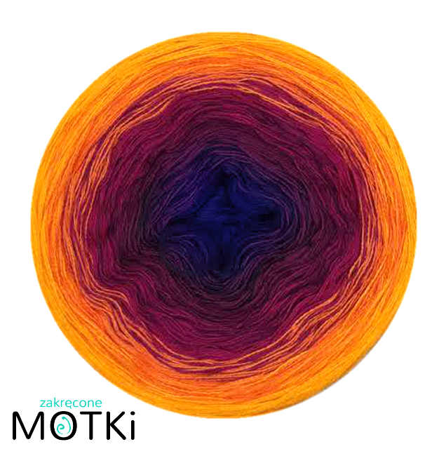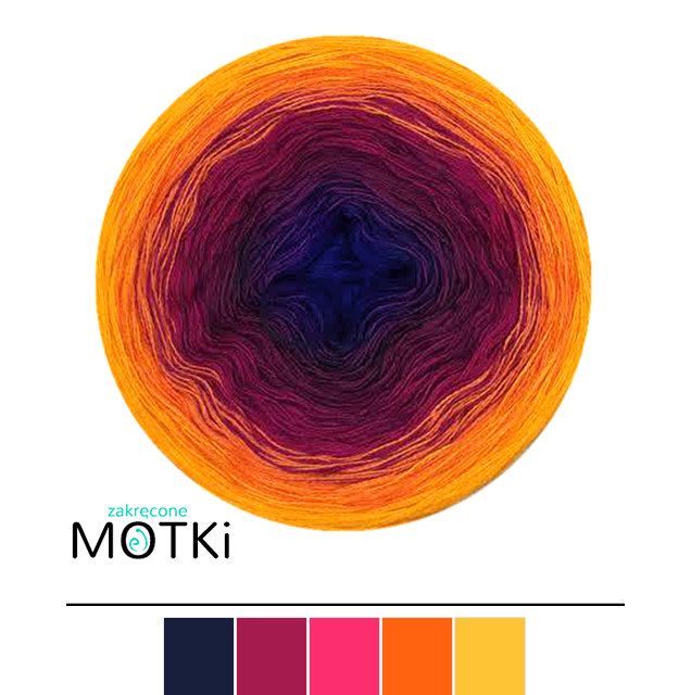 (5) Włóczka Ombre Bawełna Zero Waste - Z33a: granat/ jeżyna/ fuksja/ pomarańcz/ żółty