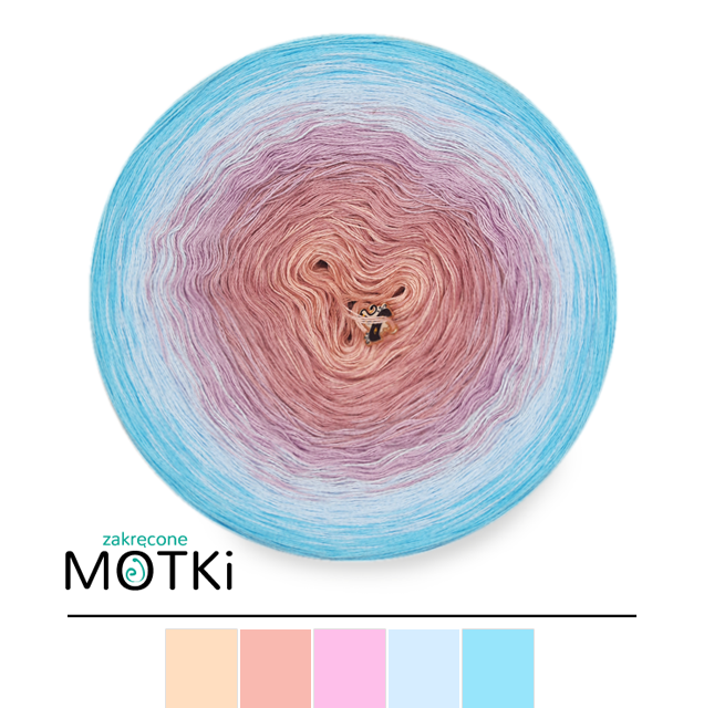 (5) Włóczka Ombre Bawełna Zero Waste - Z5: brzoskwinia/ lila/ jasny fiolet/ jasny niebieski/ błękit