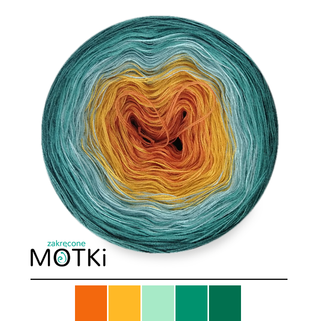 (5) Włóczka Ombre bawełna/akryl B210: koniak/ kurkuma/ patyna/ morski/ ciemny szmaragd
