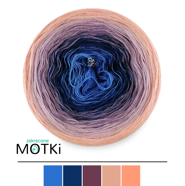 (5) Włóczka Ombre bawełna/akryl B237: atrament/ ciemny niebieski/ brudny fiolet/ lila/ łososiowy róż