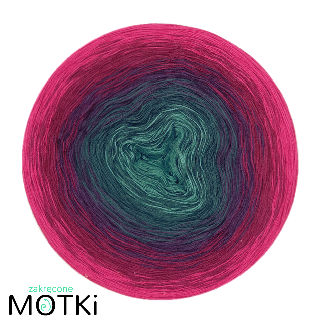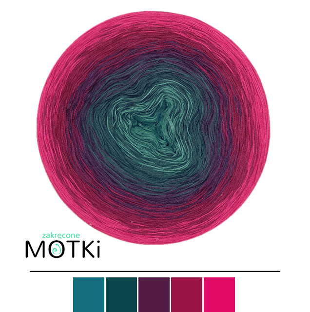 (5) Włóczka Ombre bawełna/akryl B343: jasny petrol/ petrol/ fiolet/ jeżyna/ fuksja