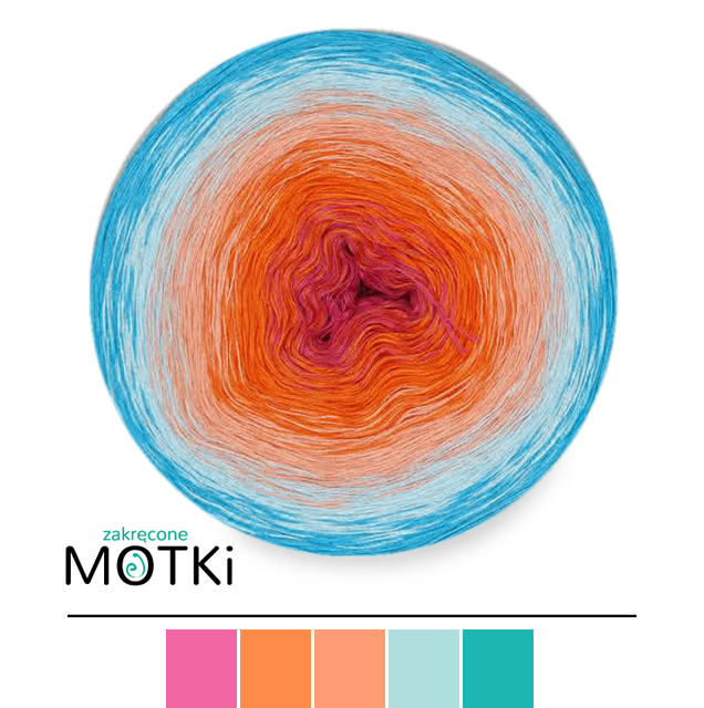 (5) Włóczka Ombre bawełna/akryl B406b: jasna fuksja/ mango/ łososiowy róż/ jasny błękit/ cyjan