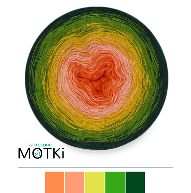 (5) Włóczka Ombre bawełna/akryl B408: mango/ łososiowy róż/ limetka/ paproć/ butelkowa zieleń