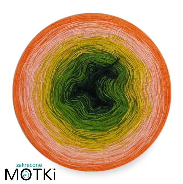 (5) Włóczka Ombre bawełna/akryl B408b: butelkowa zieleń/ paproć/ limetka/ łososiowy róż/ mango