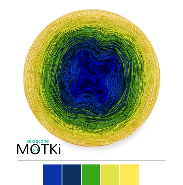 (5) Włóczka Ombre bawełna/akryl B420: szafir/ ciemny niebieski/ paproć/ limetka/ intensywny żółty