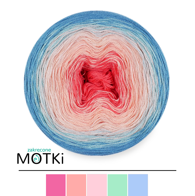 (5) Włóczka Ombre bawełna/akryl B422: jasna fuksja/ róż/ pastelowy róż/ jasny niebieski/ cyjan