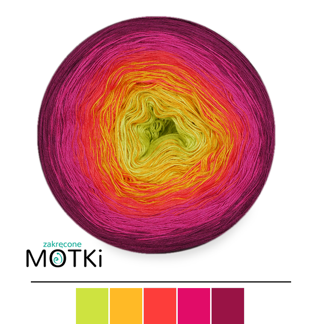 (5) Włóczka Ombre bawełna/akryl B434: kiwi/ kurkuma/ koral/ fuksja/ jeżyna