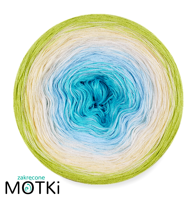 (5) Włóczka Ombre bawełna/akryl B439: turkus/ jasny błękit/ krem/ jasny żółty/ kiwi