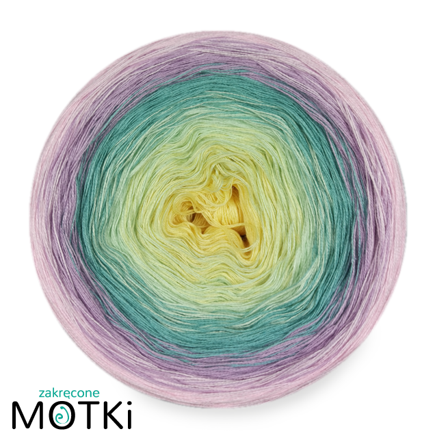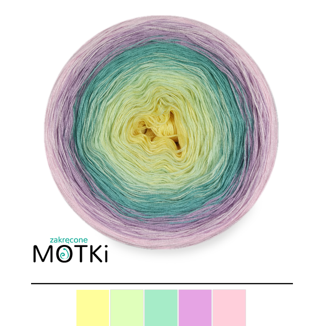 (5) Włóczka Ombre bawełna/akryl B470: jasny żółty/ jasna pistacja/ patyna/ jasny fiolet/ pastelowy róż