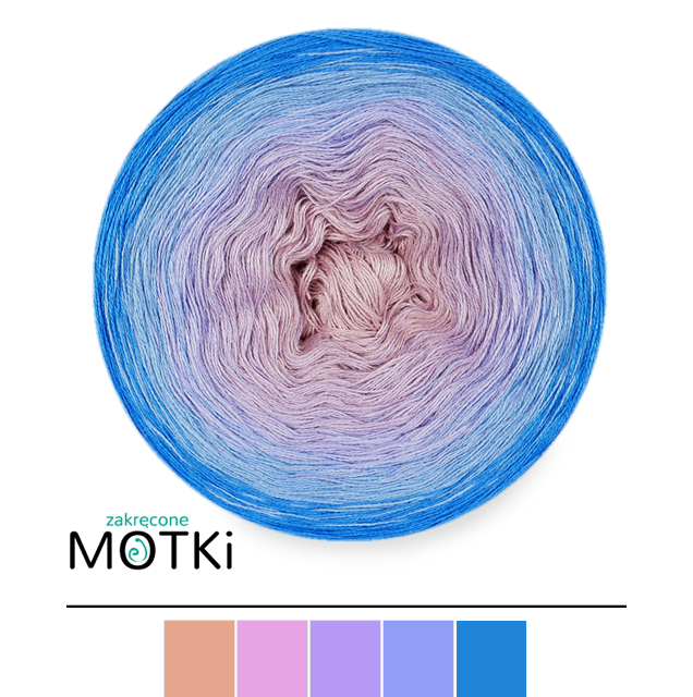 (5) Włóczka Ombre bawełna/akryl B504a: lila/ jasny fiolet/ krokus/ błękit/ lapis