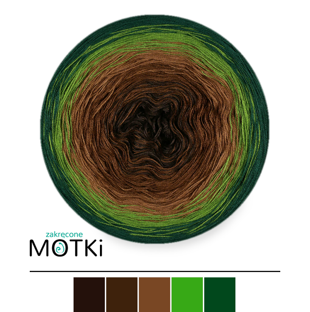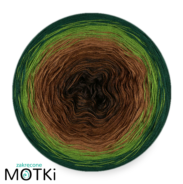 (5) Włóczka Ombre bawełna/akryl B512a: czekolada/ brąz/ orzech/ paproć/ butelkowa zieleń