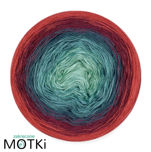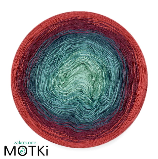 (5) Włóczka Ombre bawełna/akryl B519a: patyna/ jasny petrol/ petrol/ bordo melanż/ cegła