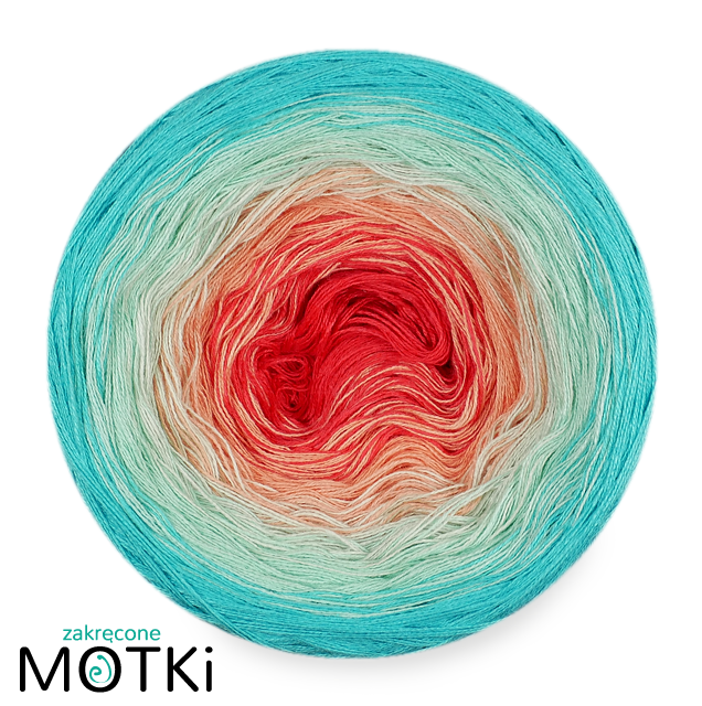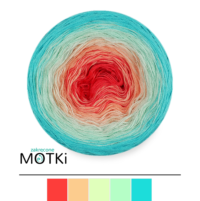 (5) Włóczka Ombre bawełna/akryl B551: koral/ łososiowy róż/ jasna pistacja/ pistacja/ turkus