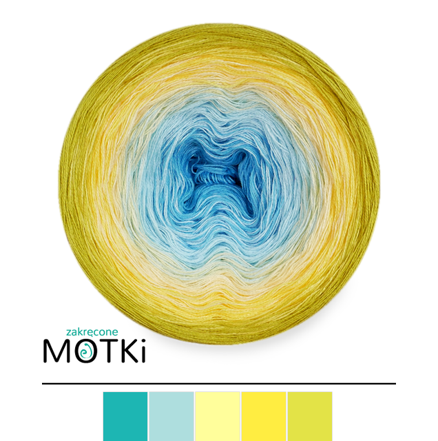 (5) Włóczka Ombre bawełna/akryl B565a: cyjan/ jasny błękit/ jasny żółty/ słoneczny żółty/ limetka