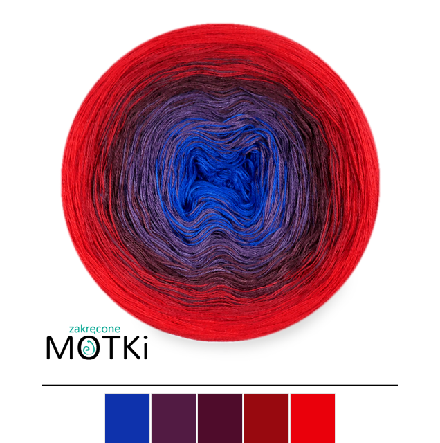 (5) Włóczka Ombre bawełna/akryl B568a: szafir/ fiolet/ wino/ burgund/ czerwień