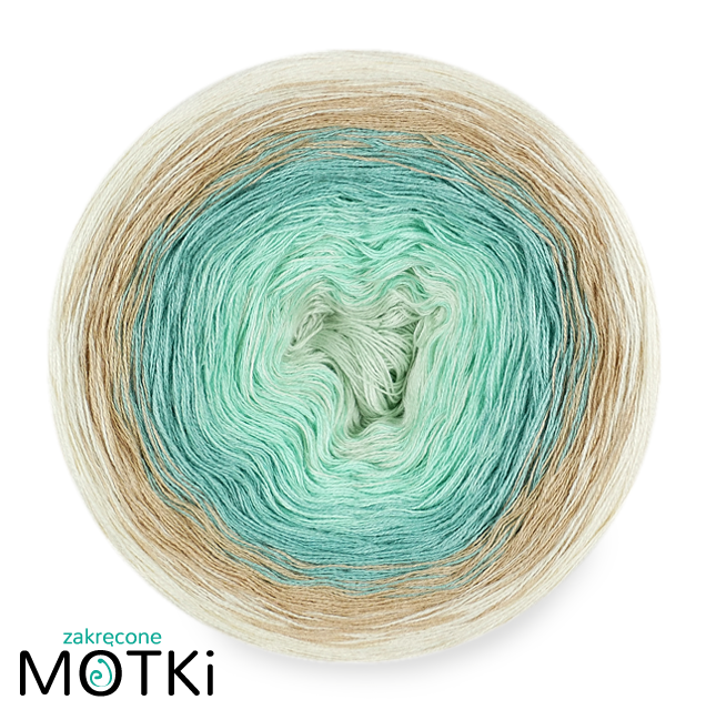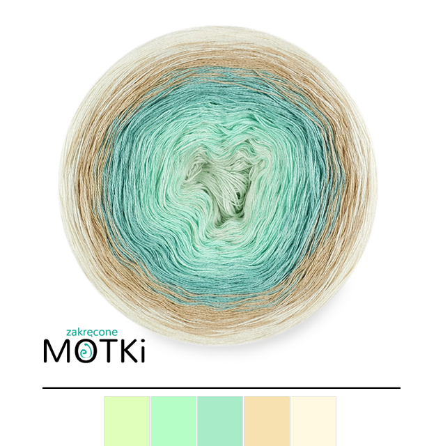 (5) Włóczka Ombre bawełna/akryl B587: jasna pistacja/ pistacja/ patyna/ ciepły beż/ krem
