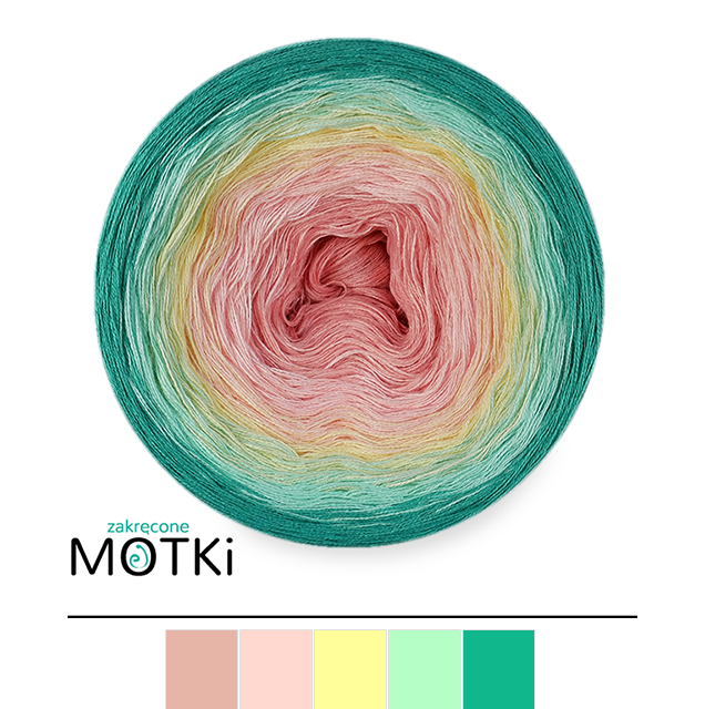 (5) Włóczka Ombre bawełna/akryl B614: róż/ jasny róż/ jasny żółty/ pistacja/ opal