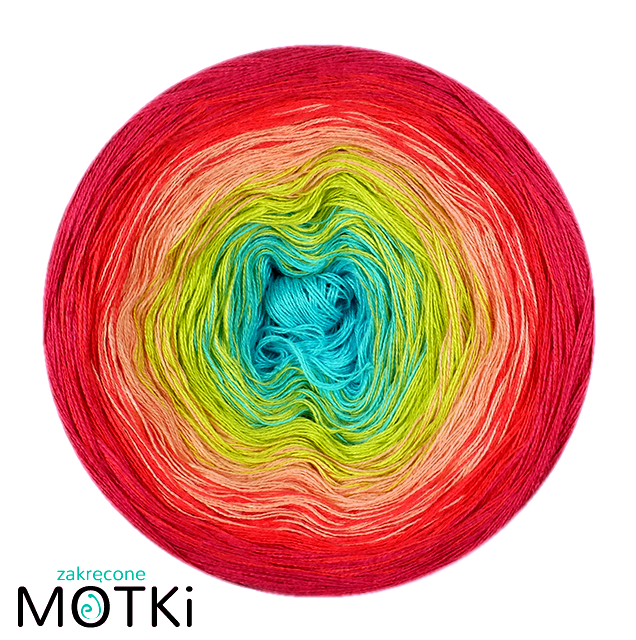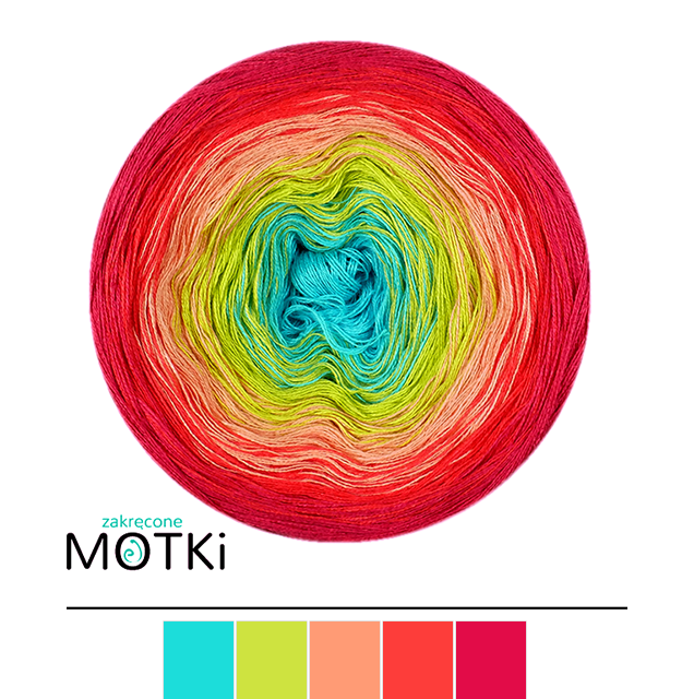 (5) Włóczka Ombre bawełna/akryl B632: turkus/ kiwi/ łososiowy róż/ koral/ piwonia