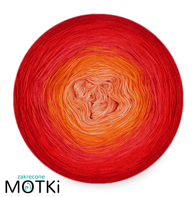 (5) Włóczka Ombre bawełna/akryl B636: łososiowy róż/ mango/ koral/ intensywna czerwień/ czerwień