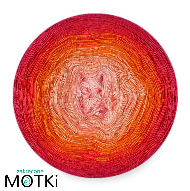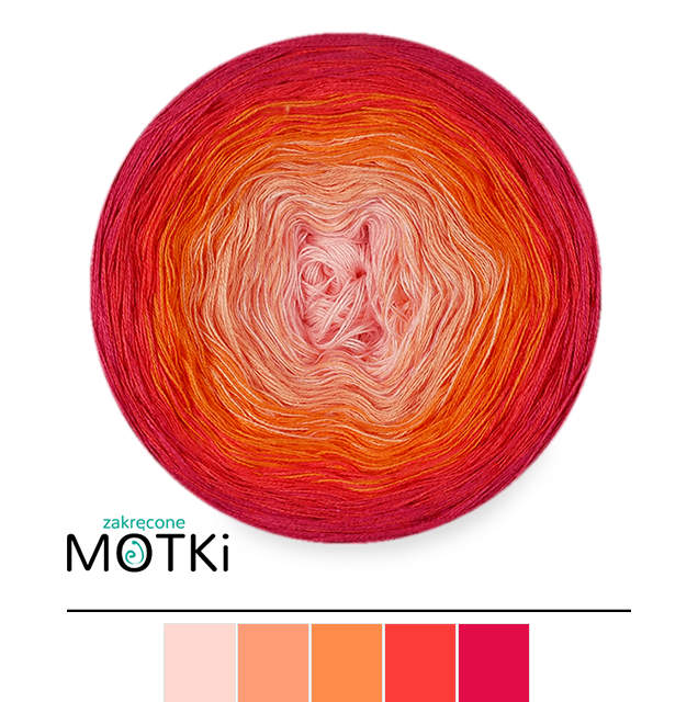 (5) Włóczka Ombre bawełna/akryl B637: jasny róż/ łososiowy róż/ mango/ koral/ piwonia