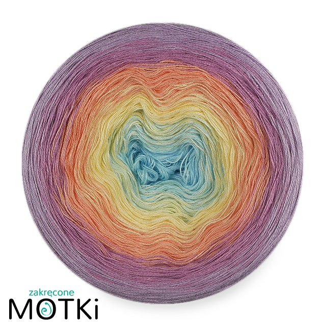 (5) Włóczka Ombre bawełna/akryl B645: jasny błękit/ jasny żółty/ łososiowy róż/ wrzos/ jasny fiolet