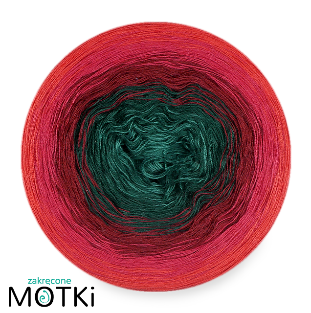 (5) Włóczka Ombre bawełna/akryl B661: ciemny szmaragd/ butelkowa zieleń/ malaga/ piwonia/ koral