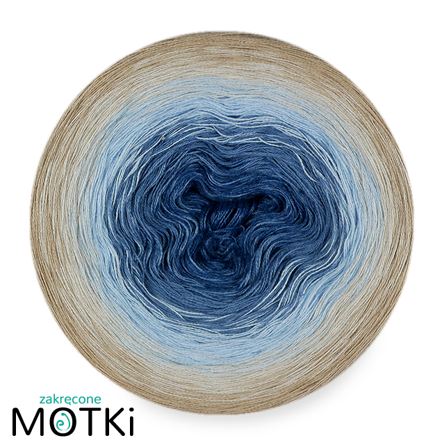 (5) Włóczka Ombre bawełna/akryl B663: indygo melanż/ niebieski/ jasny niebieski/ pudrowy beż/ ciepły beż