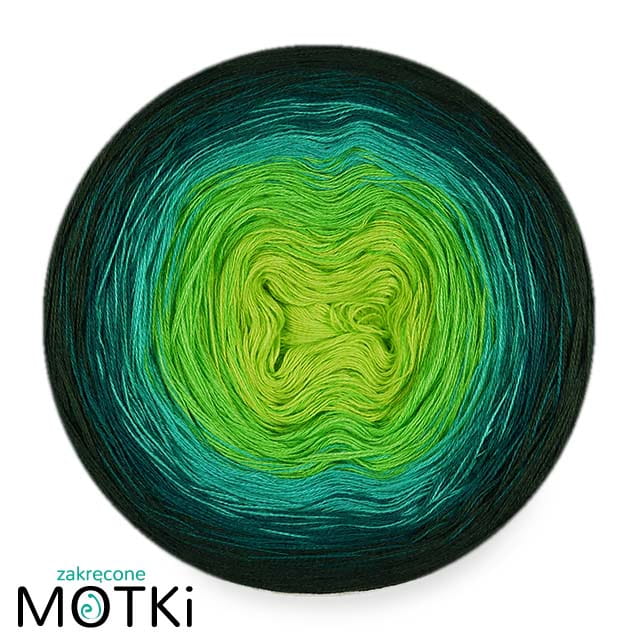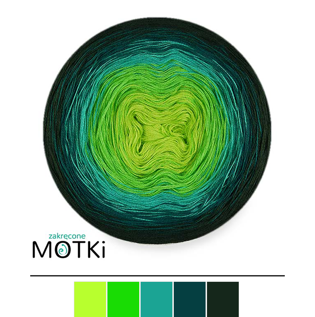 (5) Włóczka Ombre bawełna/akryl B671: neonowa zieleń/ zielone jabłuszko/ grynszpan/ navy/ ciemna butelka