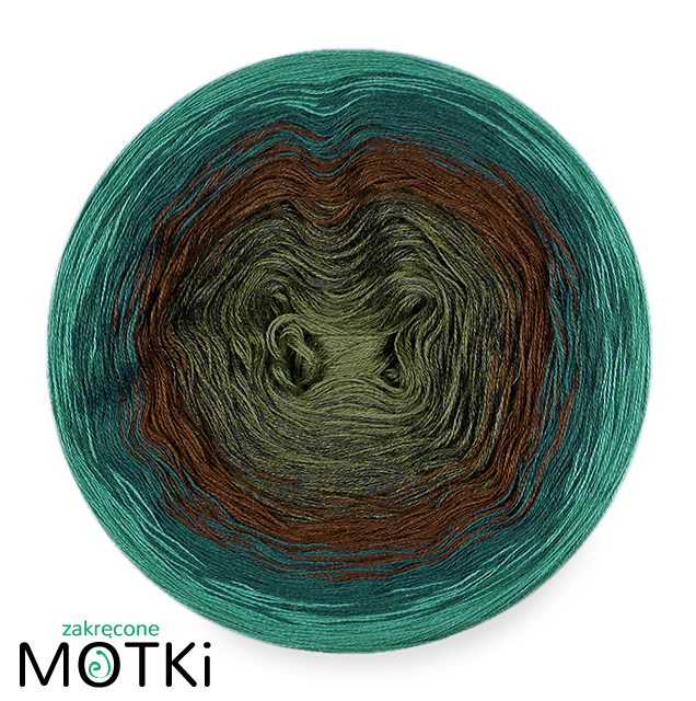 (5) Włóczka Ombre bawełna/akryl B699: jasna wojskowa zieleń/ wojskowa zieleń/ brąz/ petrol/ jasny petrol