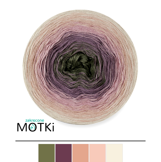 (5) Włóczka Ombre bawełna/akryl B708a: khaki/ brudny fiolet/ lila/ pąsowy/ pudrowy beż