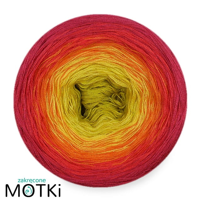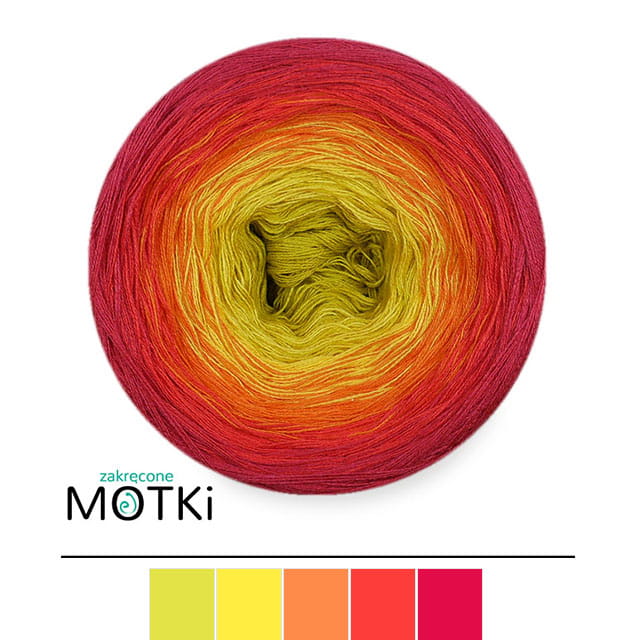 (5) Włóczka Ombre bawełna/akryl B716: limetka/ słoneczny żółty/ mango/ koral/ piwonia