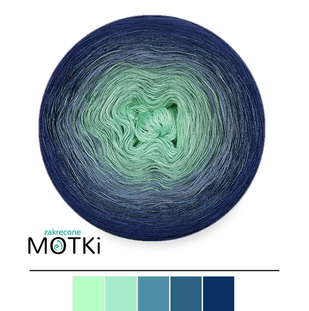 (5) Włóczka Ombre bawełna/akryl B721: pistacja/ patyna/ niebieski/ indygo/ ciemny niebieski