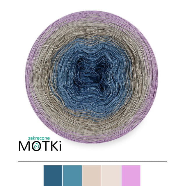 (5) Włóczka Ombre bawełna/akryl B723a: indygo melanż/ niebieski/ zimny beż/ chłodny beż/ jasny fiolet
