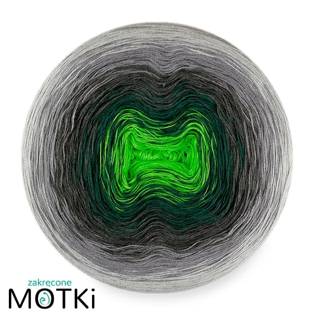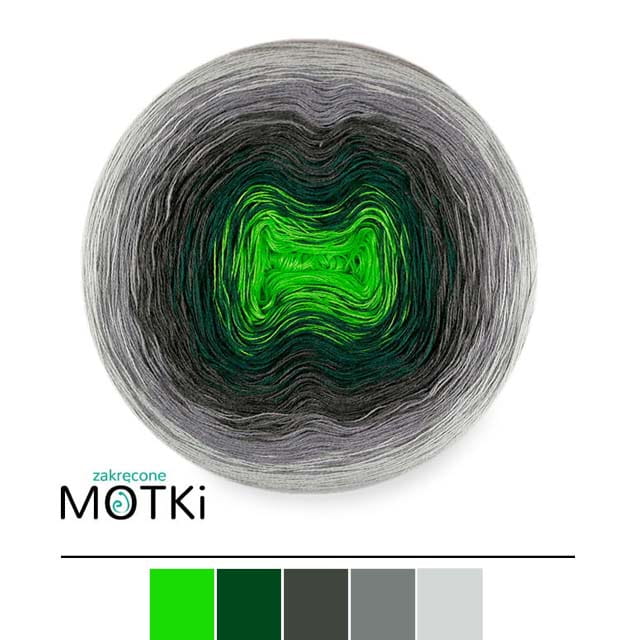 (5) Włóczka Ombre bawełna/akryl B768: zielone jabłuszko/ butelkowa zieleń/ ciemny szary/ szary/ jasny szary