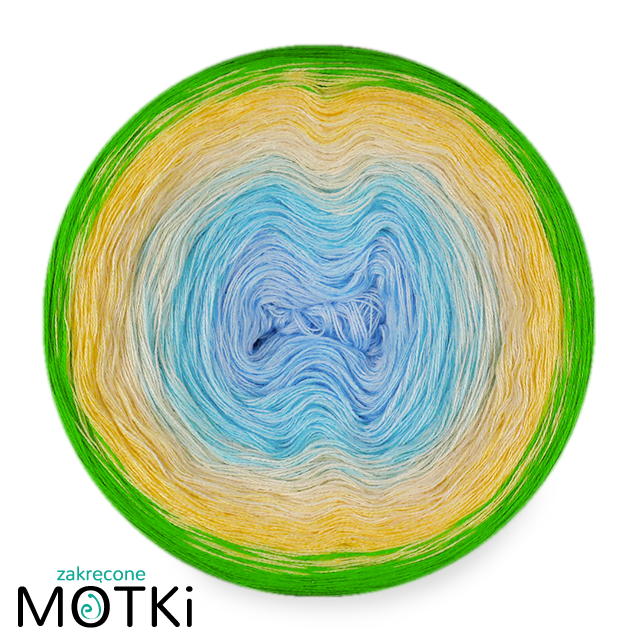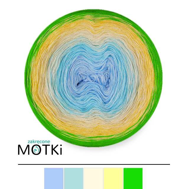 (5) Włóczka Ombre bawełna/akryl B770: jasny niebieski/ jasny błękit/ krem/ jasny żółty/ zielone jabłuszko