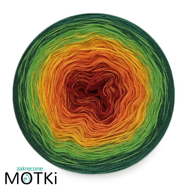 (5) Włóczka Ombre bawełna/akryl B97: burgund/ koniak/ kurkuma/ zieleń/ butelkowa zieleń