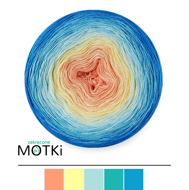 (5) Włóczka Ombre bawełna/akryl K10: łososiowy róż/ jasny żółty/ jasny błękit/ cyjan/ lazur