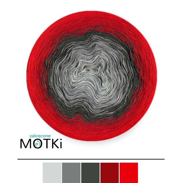 (5) Włóczka Ombre bawełna/akryl K2a: jasny szary/ szary/ ciemny szary/ burgund/ czerwień