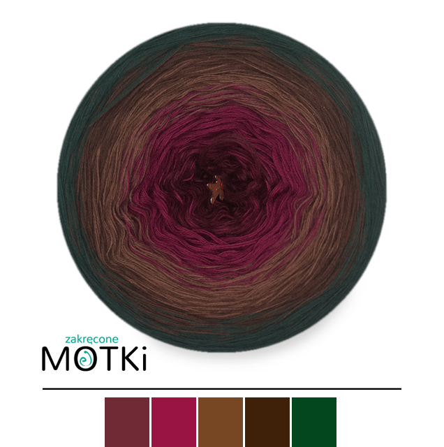 (5) Włóczka Ombre bawełna/akryl W3: bordo melanż/ jeżyna/ orzech/ brąz/ butelkowa zieleń