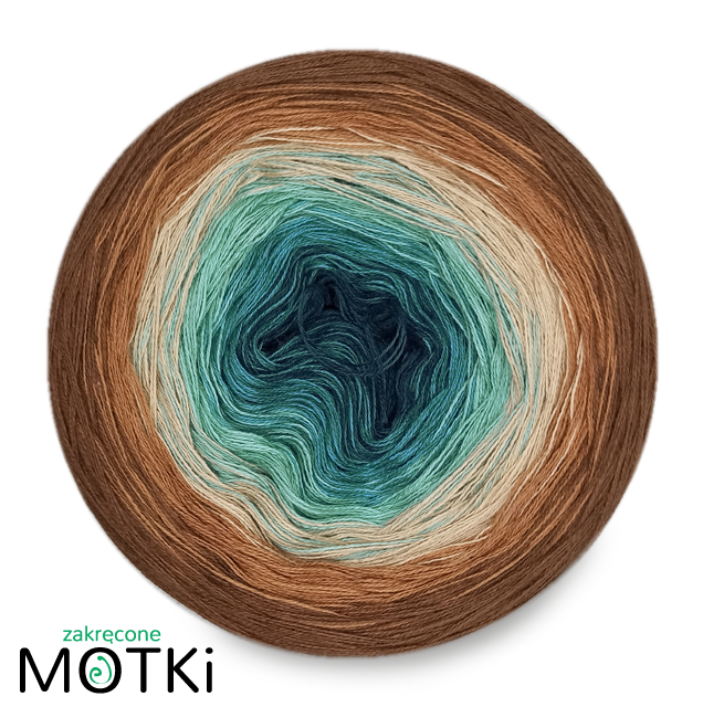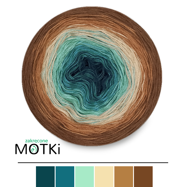 (6) Włóczka Ombre bawełna/akryl B317: petrol/ jasny petrol/ patyna/ ciepły beż/ ciepły brąz/ orzech