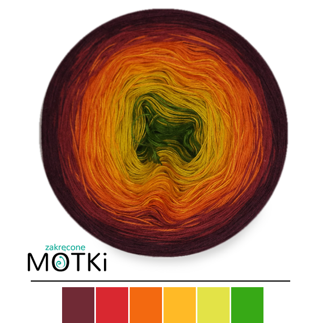 (6) Włóczka Ombre bawełna/akryl B381: paproć/ limetka/ kurkuma/ koniak/ malaga/ bordo