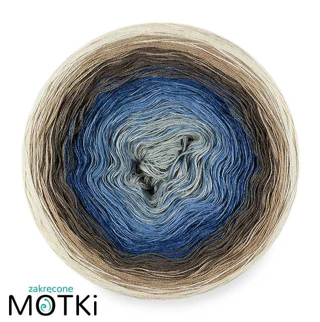(6) Włóczka Ombre bawełna/akryl B402: jasny szary/ niebieski/ indygo/ szaro-brązowy/ ciemny beż/ krem