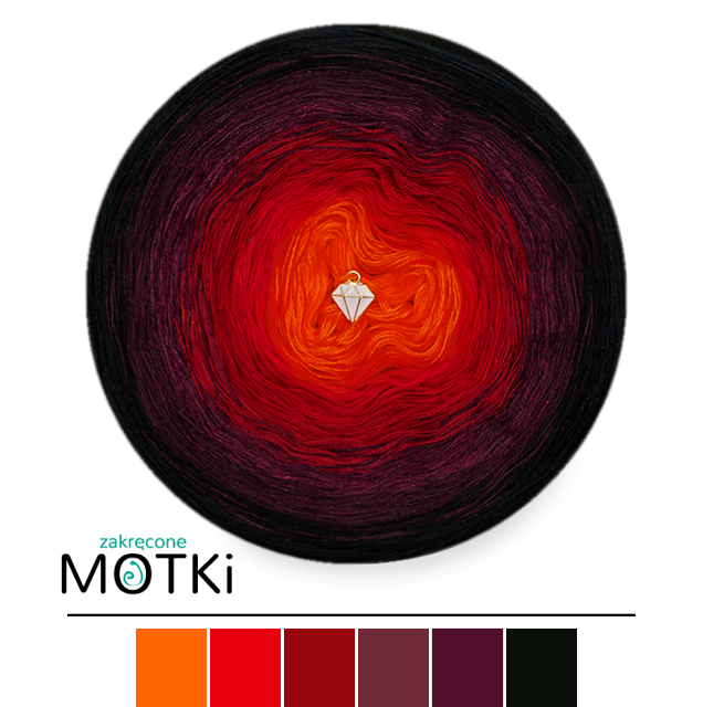 (6) Włóczka Ombre bawełna/akryl B409: pomarańcz/ czerwień/ burgund/ bordo/ wino/ czarny