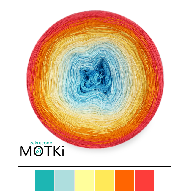 (6) Włóczka Ombre bawełna/akryl B567a: cyjan/ jasny błękit/ jasny żółty/ intensywny żółty/ mandarynka/ koral