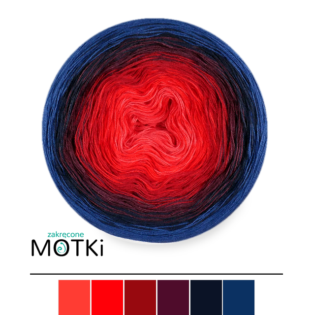 (6) Włóczka Ombre bawełna/akryl B572: koral/ intensywna czerwień/ burgund/ wino/ granat/ ciemny niebieski