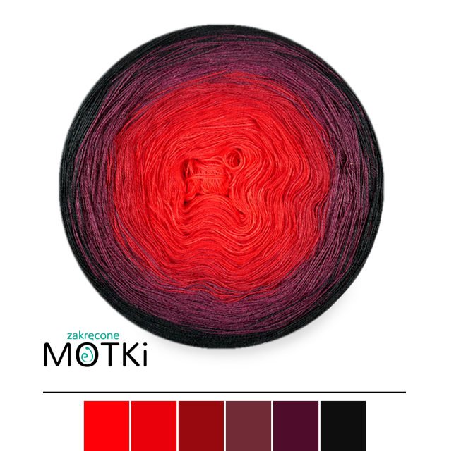(6) Włóczka Ombre bawełna/akryl B593: intensywna czerwień/ czerwień/ burgund/ bordo melanż/ wino/ czarny