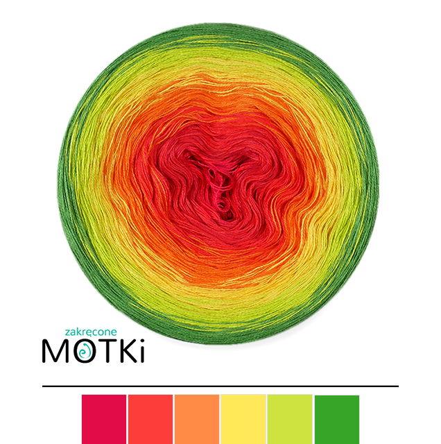 (6) Włóczka Ombre bawełna/akryl B630: piwonia/ koral/ mango/ intensywny żółty/ kiwi/ zieleń