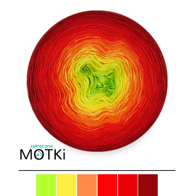 (6) Włóczka Ombre bawełna/akryl B689: neonowa zieleń/ słoneczny żółty/ mango/ intensywna czerwień/ czerwień/ burgund