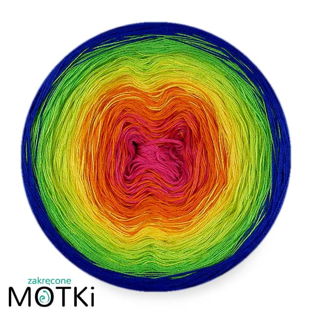 (6) Włóczka Ombre bawełna/akryl B693: jasna fuksja/ mandarynka/ słoneczny żółty/ neonowa zieleń/ zielone jabłuszko/ szafir